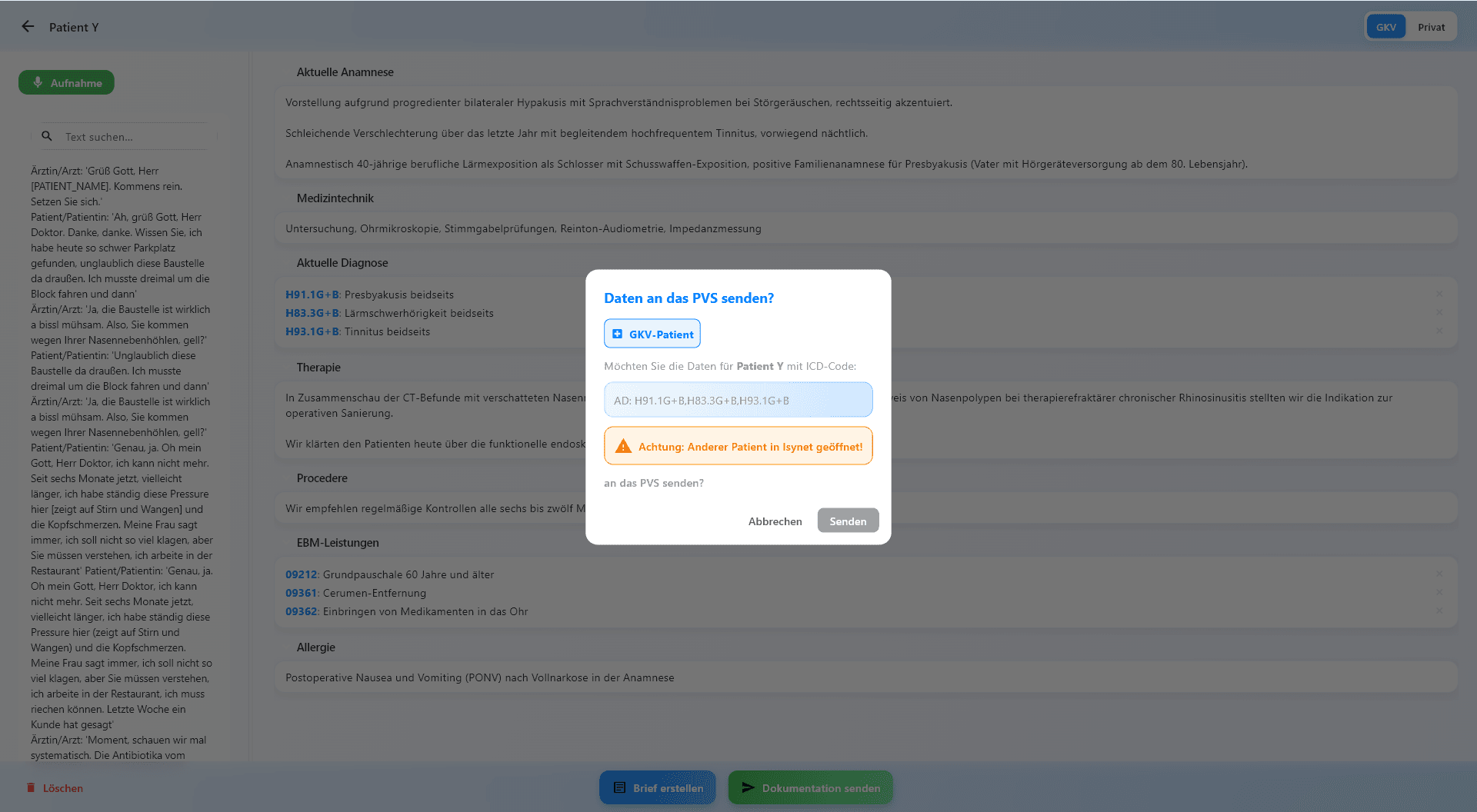 Öffnen Sie einen neuen Patienten mit einem Klick, führen Sie das Gespräch - Sikia dokumentiert live mit. Nach kurzer Überprüfung direkt ins PVS übertragen.